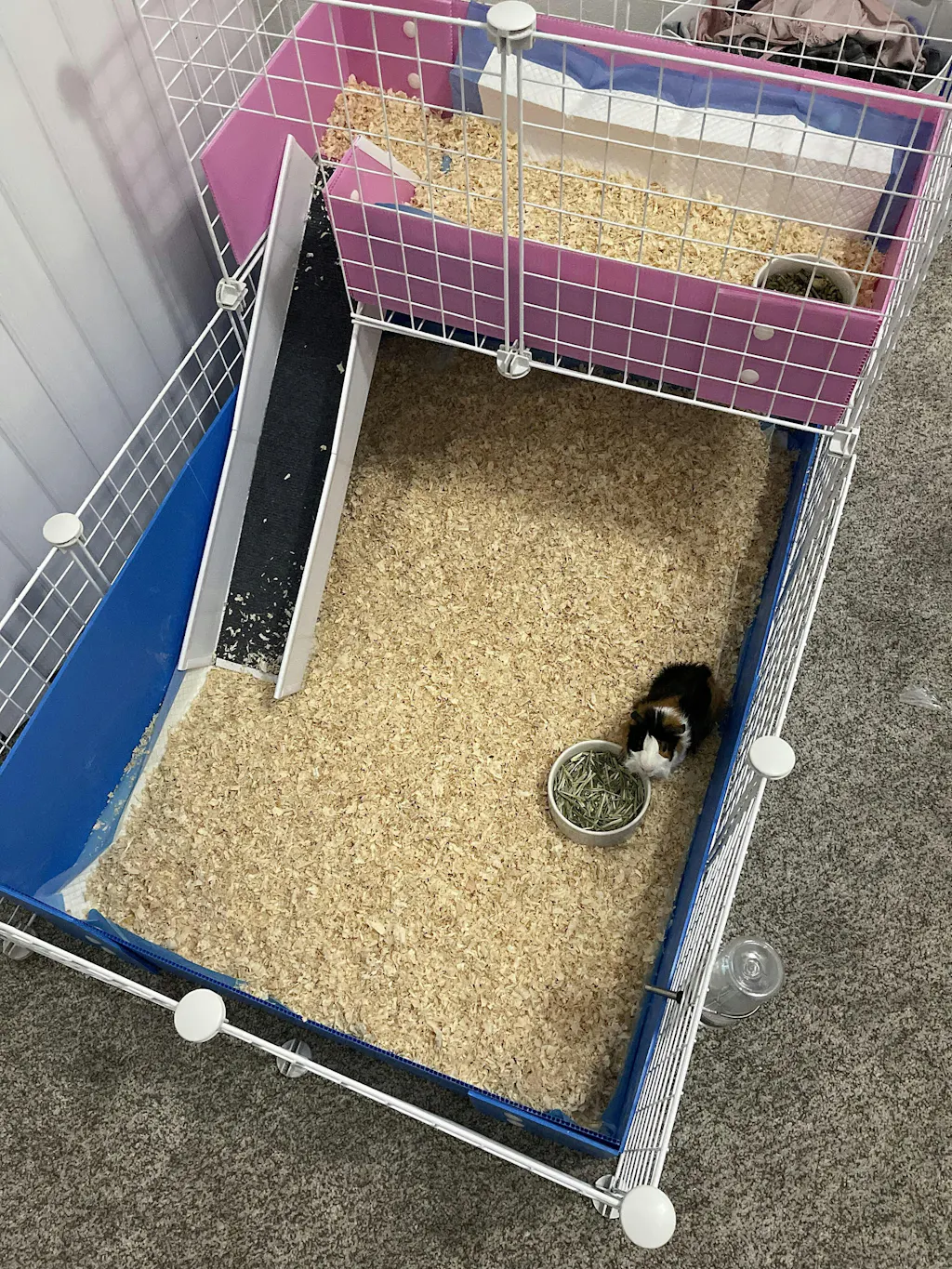 We recommend using fleece bedding over the Cage Base for your piggy’s ultimate comfort. You can purchase a Cage Base Fleece Liner here: