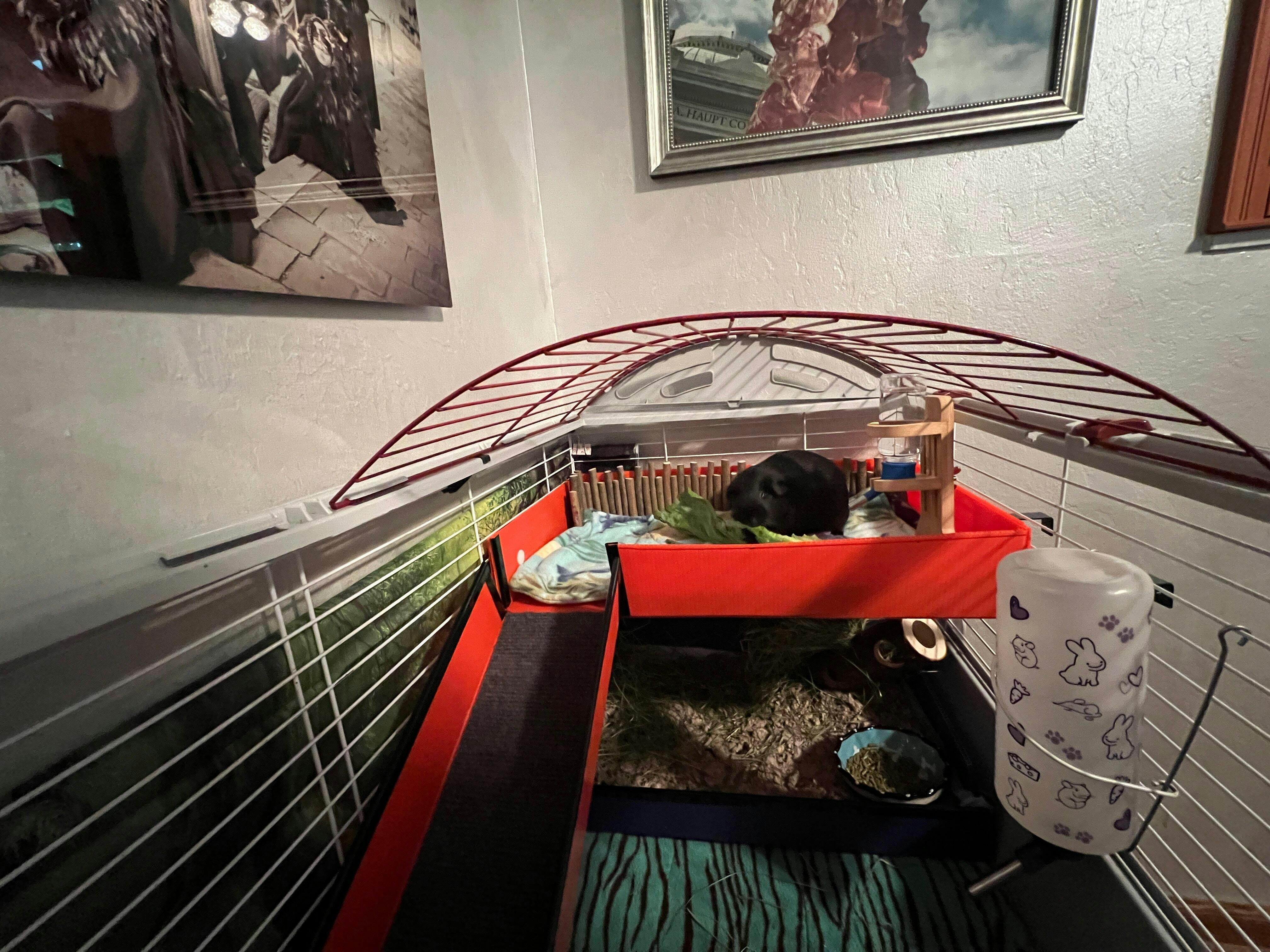 The Cavy Bistro is a 2x1.5 grid-sized kitchen area designed for three to four adult guinea pigs.